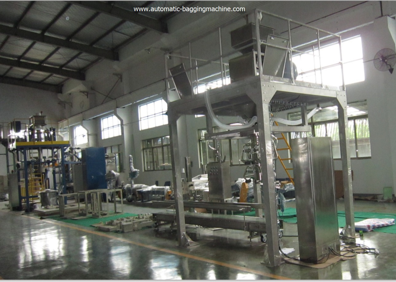 자동적 리프팅 materials→Automatic 체중기 → 자동 가방 패키징 장치 (가방, 강타 가방, 클램프 가방, 비어 있는 개방 백을 얻으세요) →Horizontal 자동실링기 부대 (가방, 절단 라인을 밀봉한 자동 컨베잉) → 완성품 생산량 → 자동 컨베잉