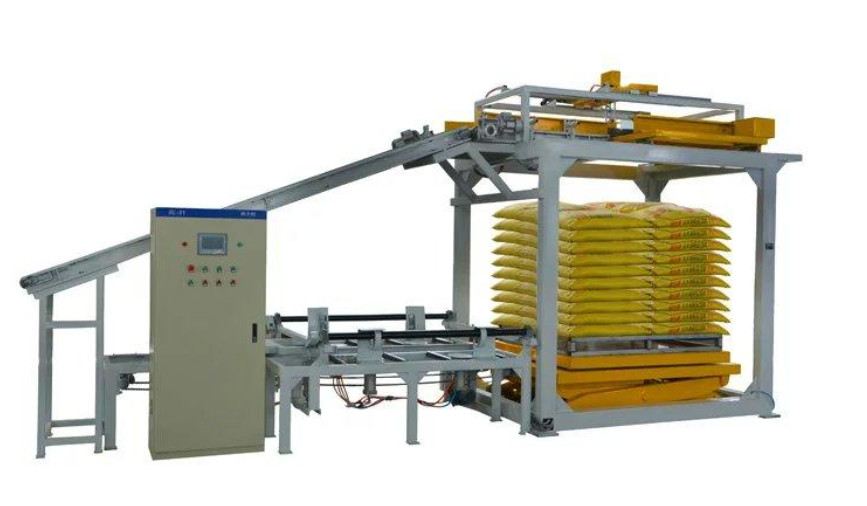 팰리타이저는 포함 소재를 쌓아 올리 (통에서 가방, 배럴, 기타 등등을 짜) 또는, 자동적으로 어떤 배열에 따라 (나무로 된) 팔레트 위의 / 비패킷된 정규 형태 품목을 패키징했습니다. 여러 레이어를 쌓아 올린 후, 가득 찬 팔레트는 더욱 포장대서 또는 지게차에 의한 창고에 밖에 운반될 것입니다. 그것은 패키징 절차 뒤에 안에 지그재그 배열의 가방과 상자의 적층화에 적합합니다.