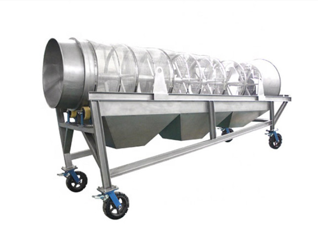 거친 사료(예: 1차 분쇄기에서 나온 것)는 그리즐리의 상단에서 공급됩니다.큰 덩어리는 구르며 아래쪽 끝으로 미끄러지며(꼬리 배출), 막대의 구멍보다 작은 크기의 작은 덩어리는 그리드를 통해 별도의 수집기로 떨어집니다.